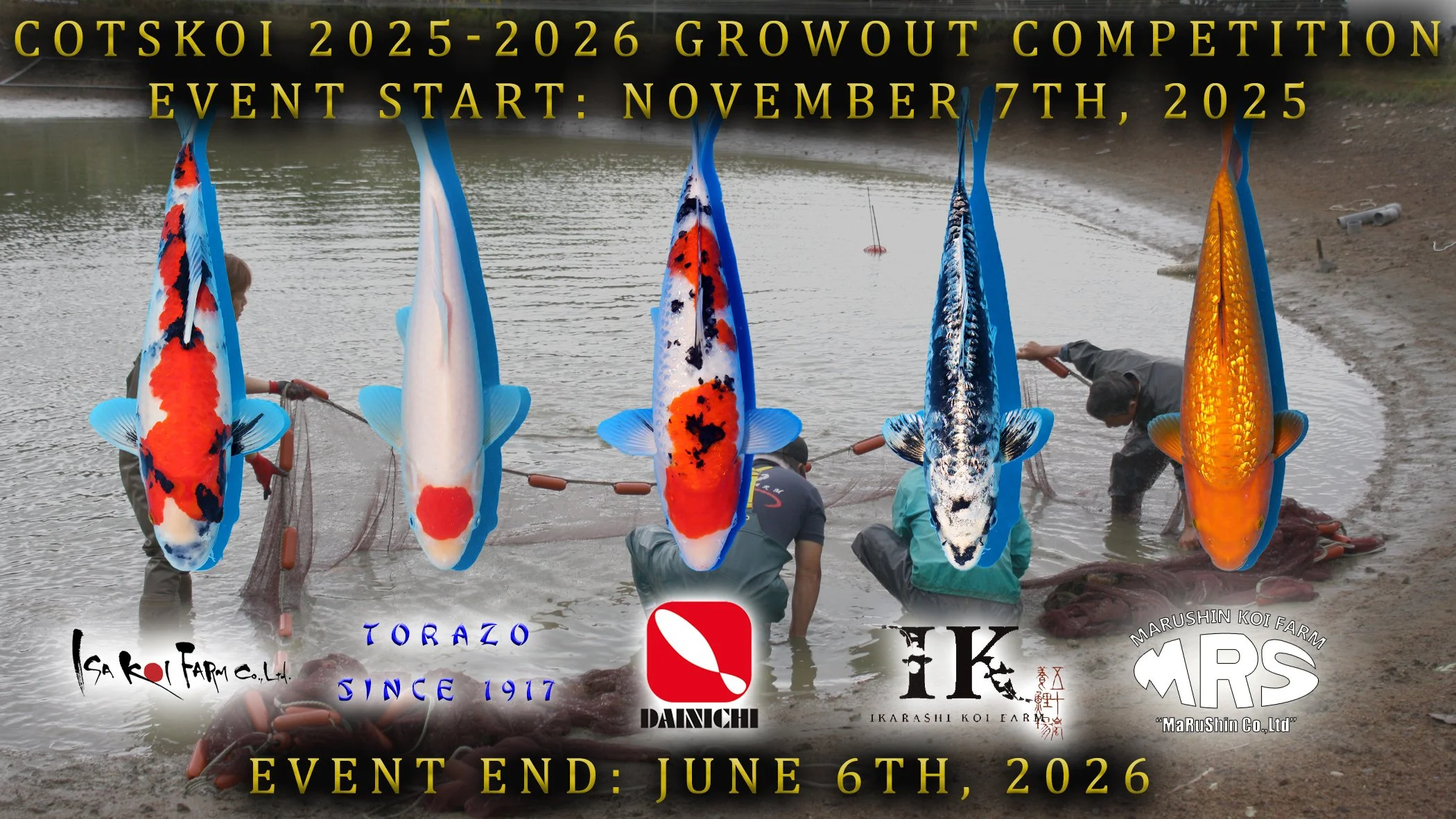 Welcome to the 2025-2026 Children of the Sun Koi Growout Competition—where unmatched quality meets exceptional value, complemented by our inclusive Azukari service. This exclusive event presents an extraordinary opportunity to acquire premium Nisai Koi, sourced from renowned breeders such as Dainichi Koi Farm, Isa Koi Farm, Torazo Koi Farm, Ikarashi Toshinobu Koi Farm, Marudo Koi Farm, and the exciting newcomer Marushin Koi Farm.